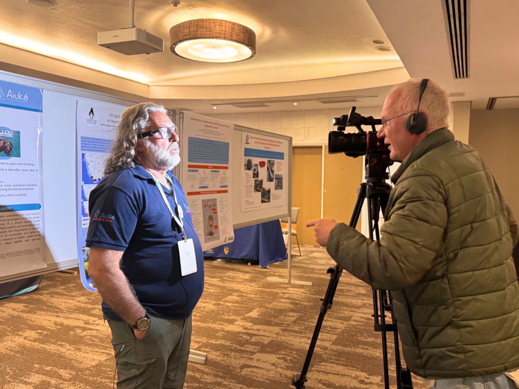 Ao longo da conferência, a Aiuká teve uma participação expressiva, contribuindo com trabalhos que abordaram monitoramento pós-emergência, desafios da influenza aviária em cenários de contaminação por óleo, avanços em técnicas de afugentamento e dissuasão da fauna, interações de aves com plataformas offshore e novas ferramentas de manejo. Também apresentamos um pôster sobre um caso raro de carcinoma renal em Sula dactylatra e participamos também de workshops pré-conferência voltados ao cuidado veterinário de fauna oleada (também patrocinado pela OceanPact) e ao bem-estar psicológico de equipes envolvidas em respostas complexas.
